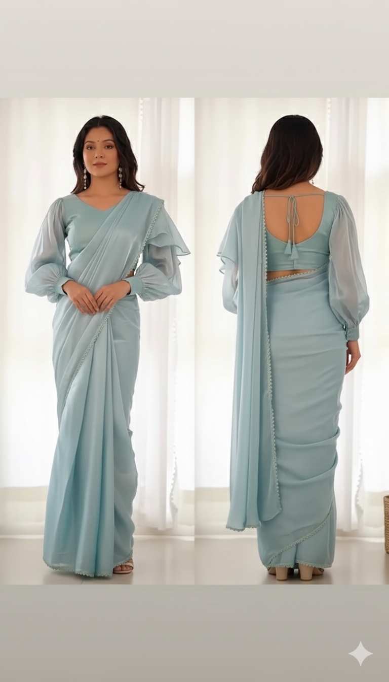 Step into timeless elegance with the Embroidered Ruffled Saree, a perfect blend of traditional Indian craftsmanship and contemporary styling. Designed for modern women who cherish grace and sophistication, this saree is ideal for weddings, festive celebrations, parties, and special occasions.