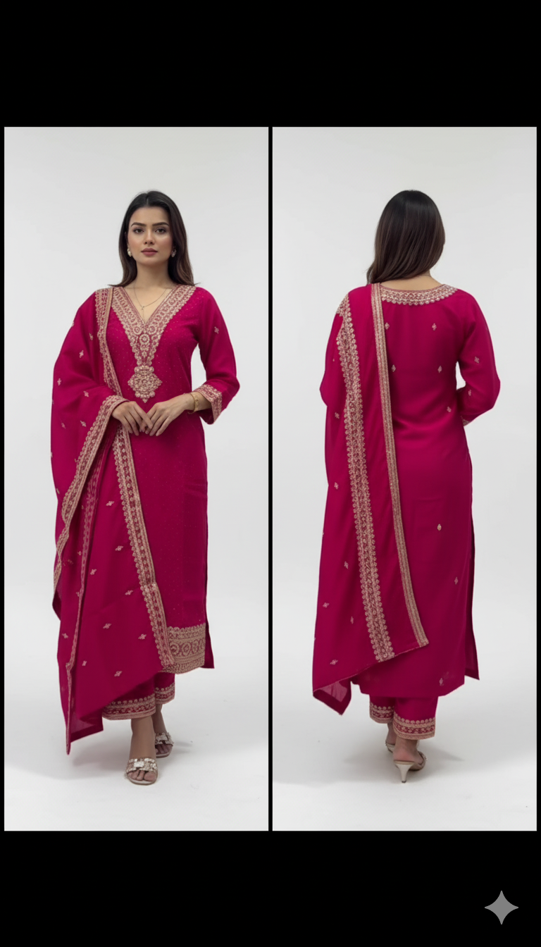 A matching dupatta (if included) completes the set with a touch of finesse. Light and flowy, it adds movement and depth to your ensemble, making it ideal for both formal and casual wear.