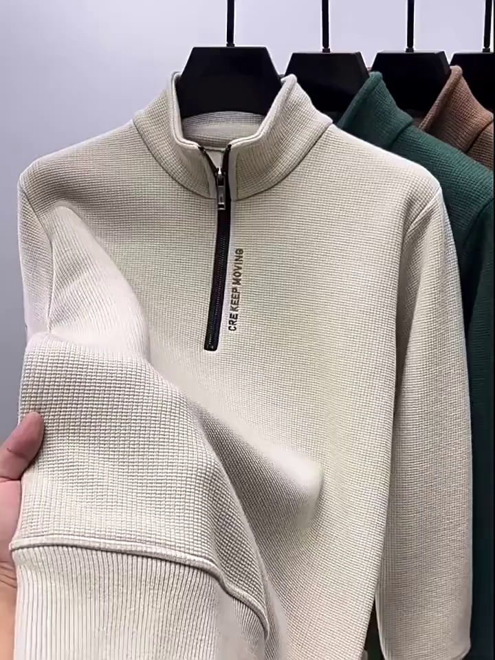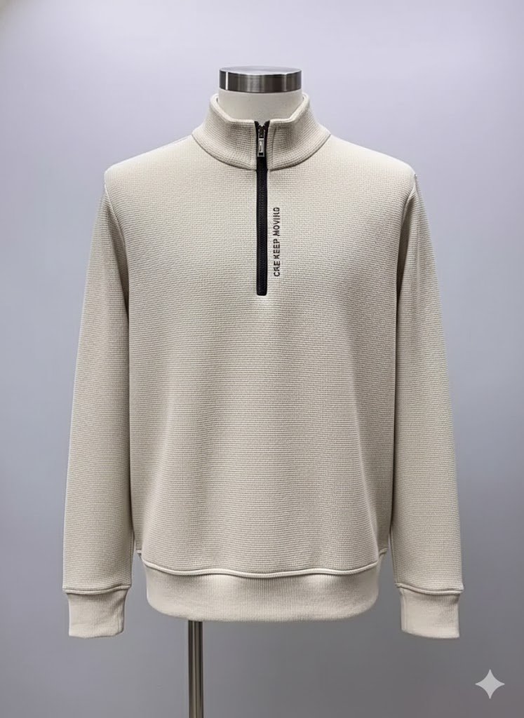 Layer it over a button-down shirt and combine with chinos or tailored trousers for office-appropriate style. The half-zip design adds sophistication without feeling formal, making it perfect for casual Fridays or semi-casual events.