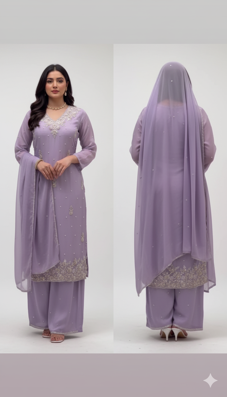 Cohesive Ensemble: Kurta, bottom, and dupatta designed for a polished, harmonious look.
